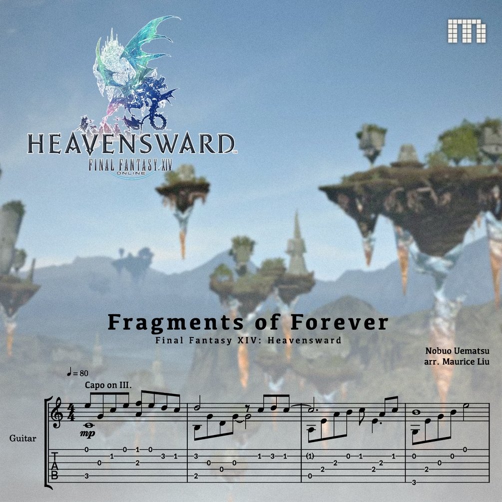 This is my solo classical guitar arrangement sheet music + tab for Fragments of Forever from Final Fantasy XIV: Heavensward, composed by Nobuo Uematsu.