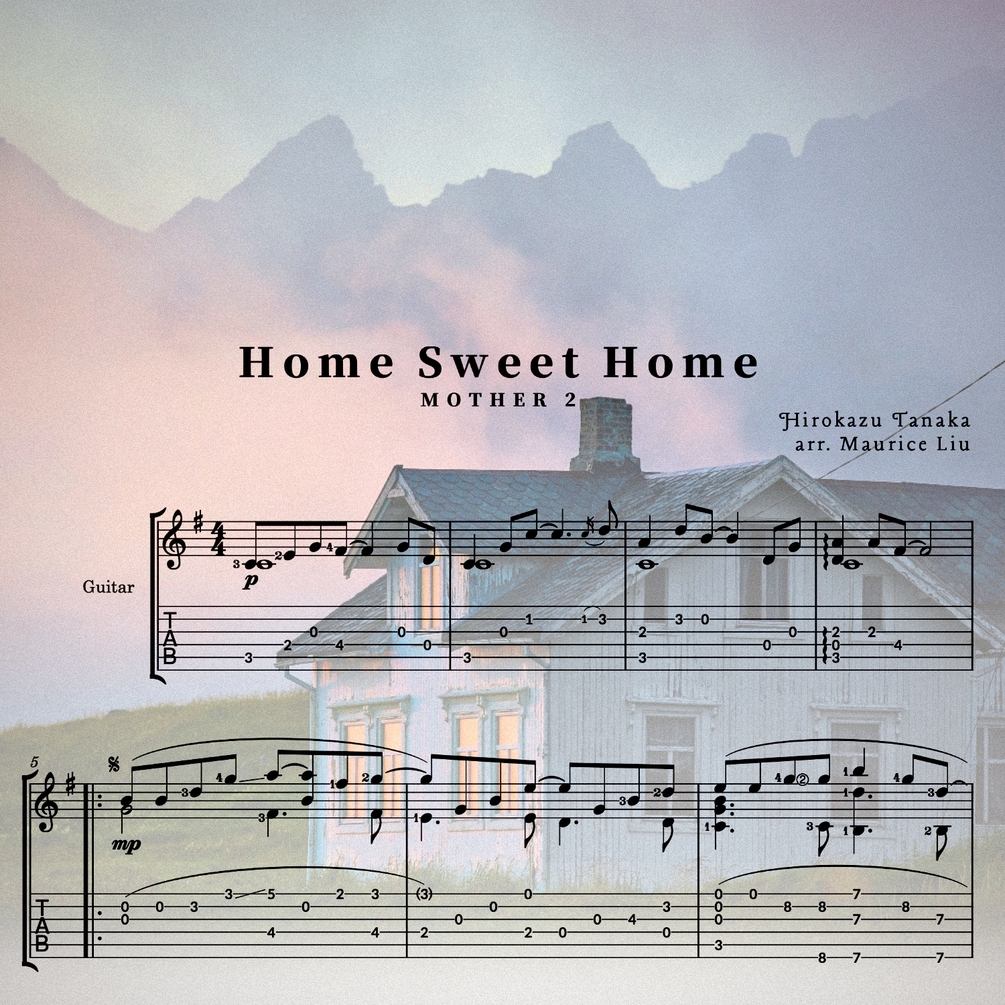 This is my guitar arrangement sheet music and tabs for Home Sweet Home from MOTHER2 / Earthbound, composed by Hirokazu Tanaka.