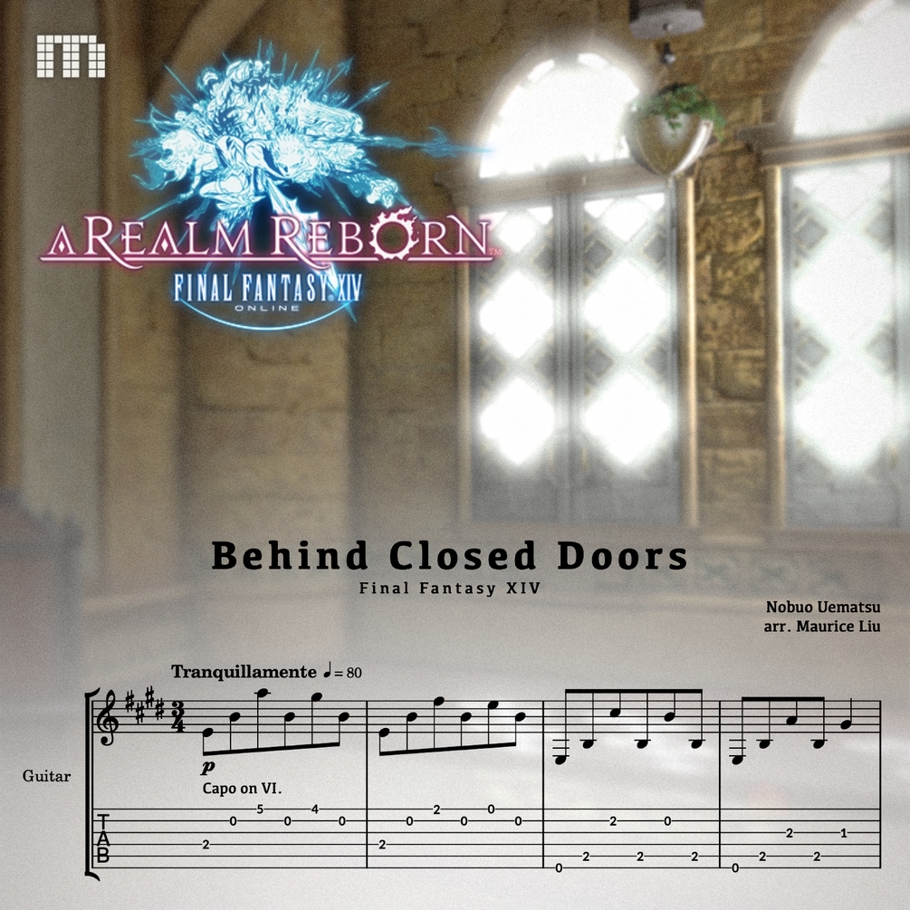 This is my solo classical guitar arrangement sheet music + tab for Behind Closed Doors (inn room) from Final Fantasy XIV, composed by Nobuo Uematsu.