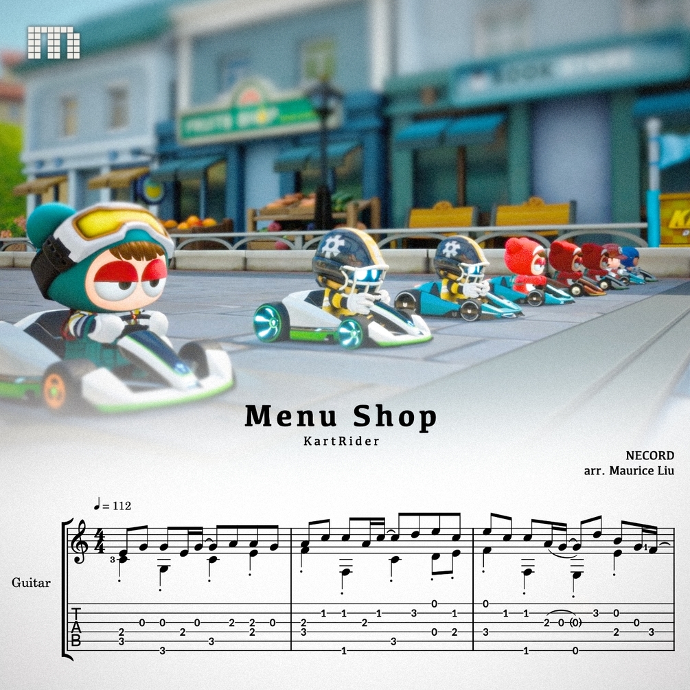 This is my solo classical guitar arrangement sheet music + tab for Menu Shop from KartRider, produced by NECORD.