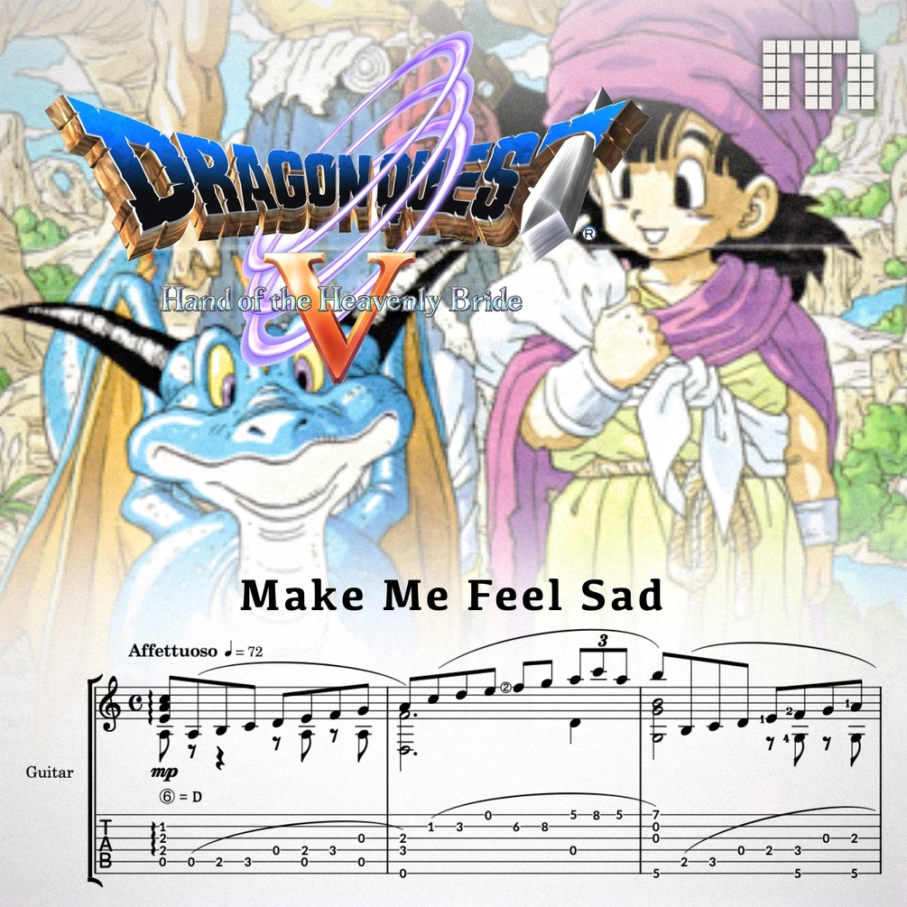This is my solo classical guitar arrangement sheet music + tab for Make Me Feel Sad from Dragon Quest V, composed by Koichi Sugiyama.