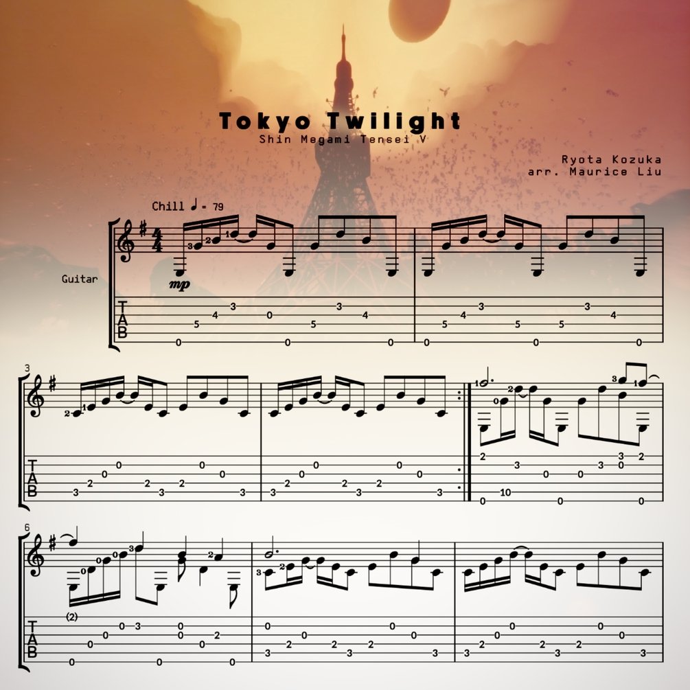 This is my guitar arrangement sheet music and tabs for Tokyo Twilight from Shin Megami Tensei V, composed by Ryota Kozuka.
