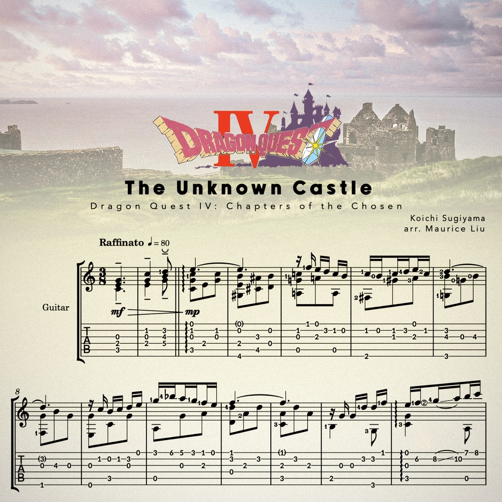This is my guitar arrangement sheet music and tabs for The Unknown Castle from Dragon Quest IV, composed by Koichi Sugiyama.
